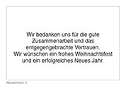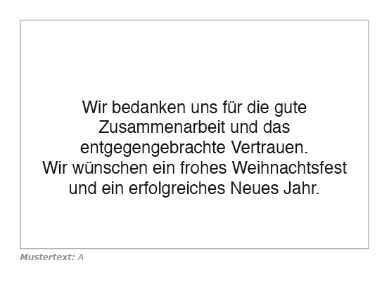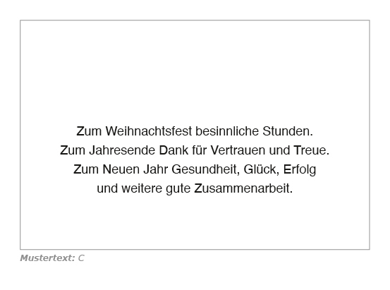 Hier sehen Sie unsere Standard-Texte für Weihnachtskarten. Ihren Standard-Text oder Ihren individuellen Text können Sie in